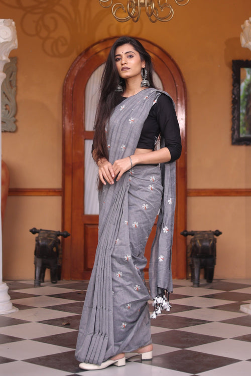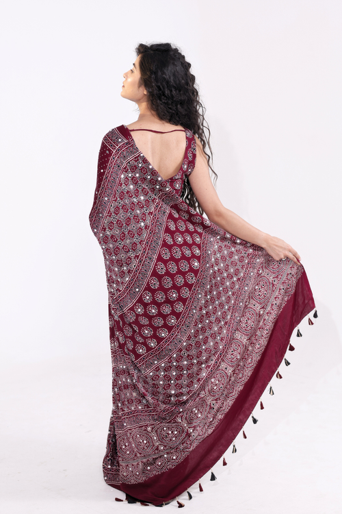 Our sarees are inspired by India’s rich textile heritage, featuring fabrics like Mul Cotton, Khadi, and Chanderi silk, along with traditional techniques like Bagru block printing using natural dyes.